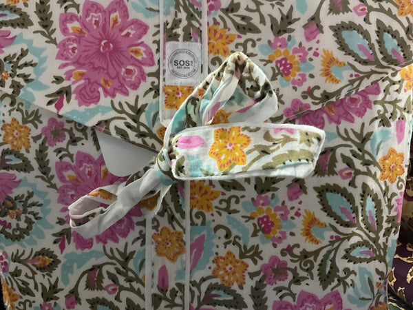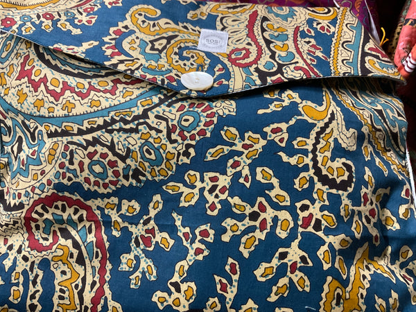 You'll be lounging in style with this cozy Cotton Robe! Hand sewn and block printed in one of many vibrant colors - you'll feel like royalty in the perfect robe, duster or cover up. It even comes in its own fabric envelope - perfect for a gift! Because you can never be too pampered.