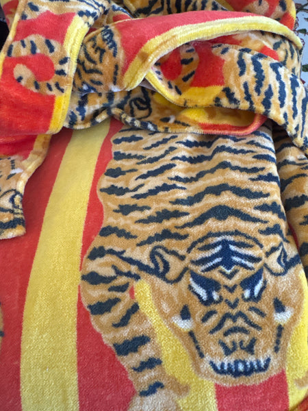 The Velvet Robe is the perfect gift for the Holiday season. Crafted with luxurious velvet, this reversible robe is lined with soft cotton for optimal comfort and warmth. Eye-catching detailing, such as bright-colored cotton and piping, make it a special piece to celebrate the season. Snuggle in the velvet robe or wear it as a duster for those longest winter days.