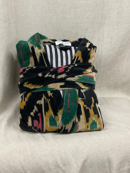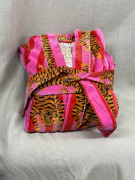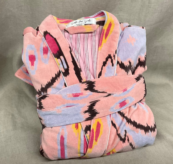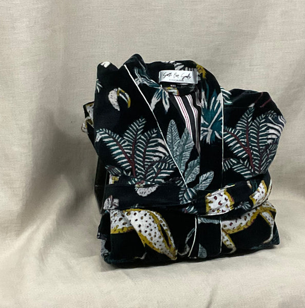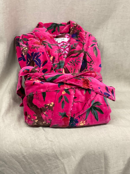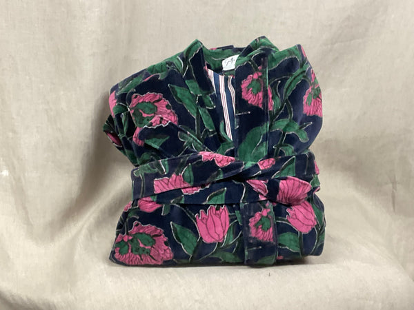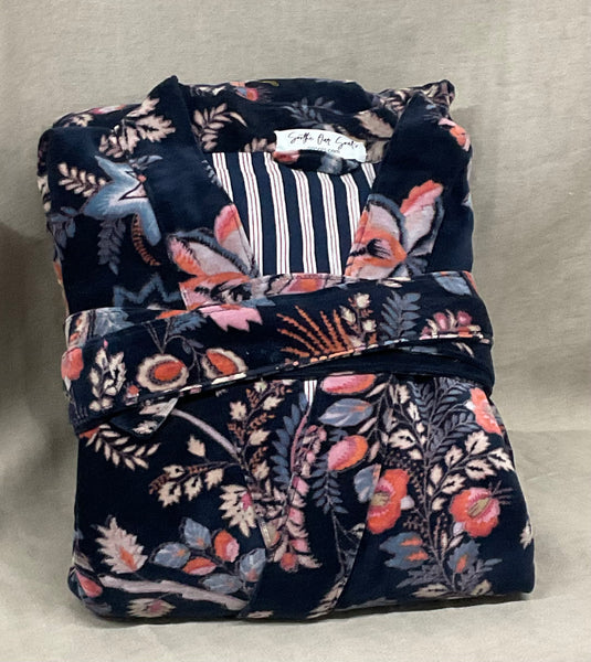 These are a beautifully printed velvet robe lined with 100% cotton.